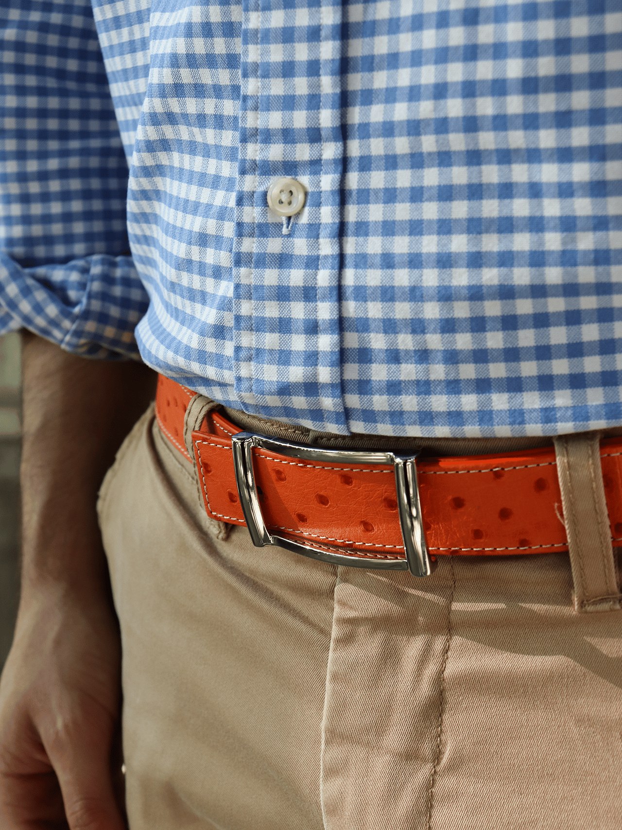 Notre ceinture réversible Jean Rousseau, avec une très belle boucle double en laiton palladié. Cet article est entièrement doublé en veau grainé et est fabriqué en France par nos artisans, au sein de notre manufacture.