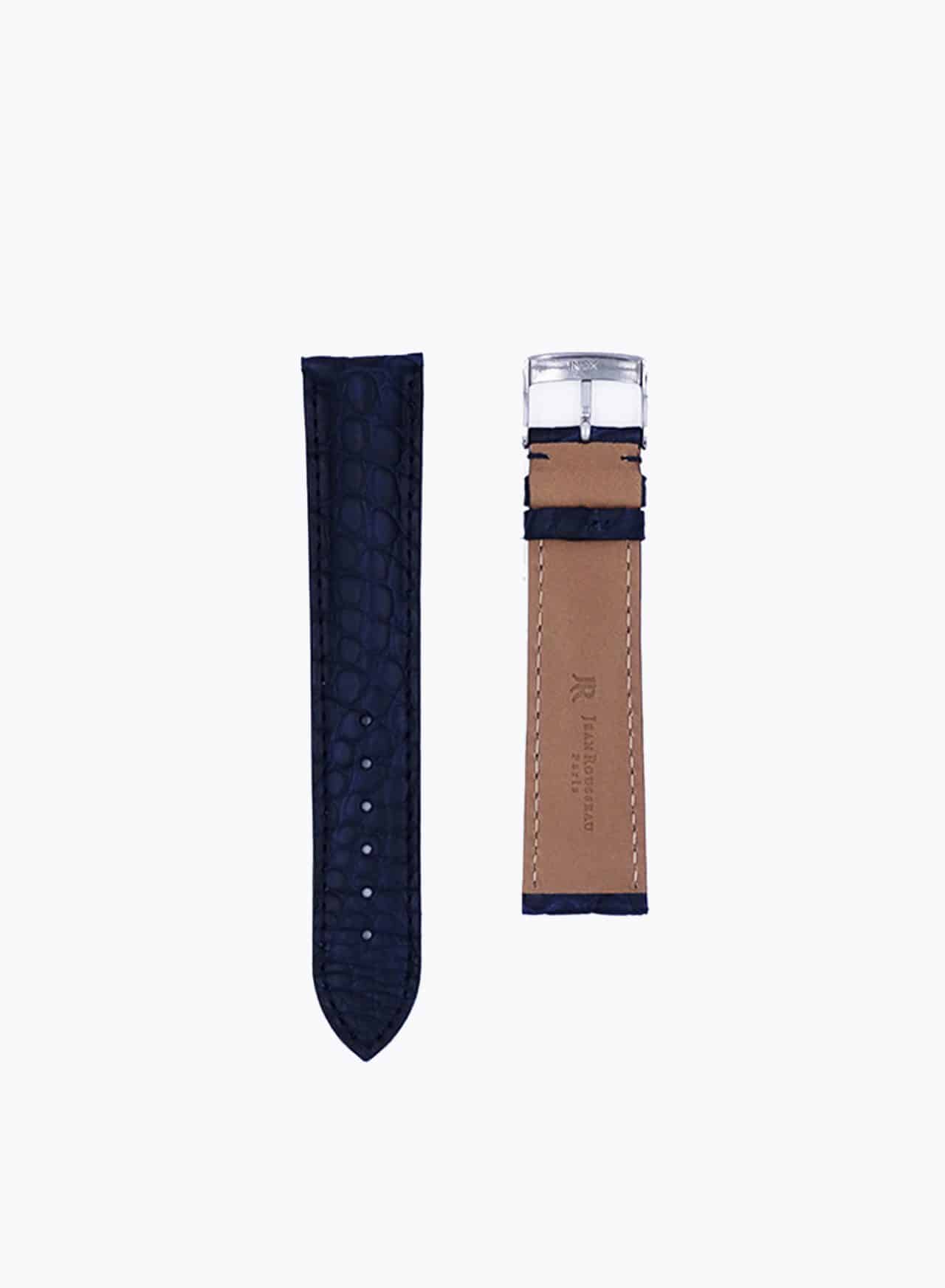 Calfskin is available embossed with different grain patterns such as “Soja” or “Dolphin.” These different textures add interest and an appealing, understated look to the surface of these calfskin straps and leather goods.