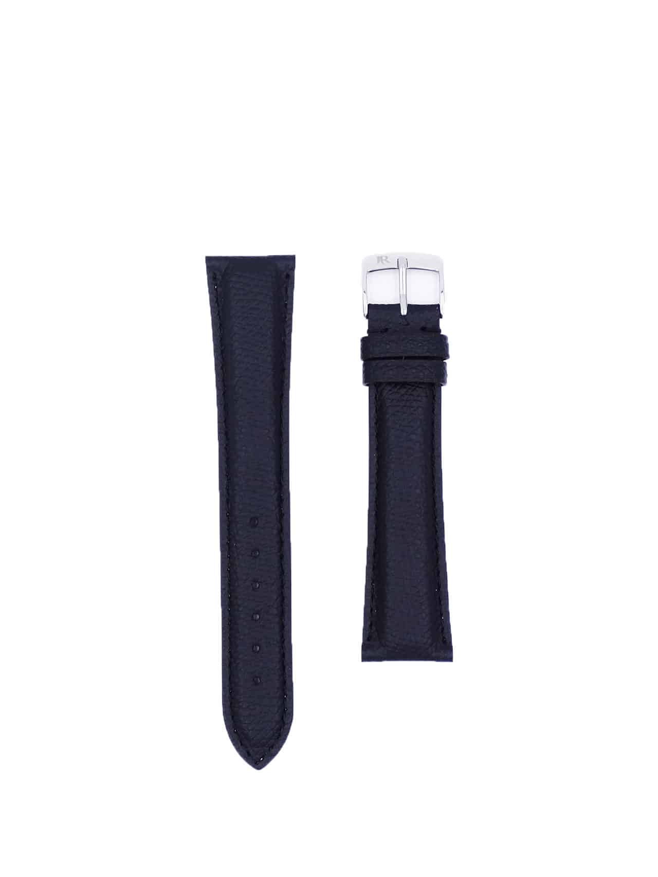 Calfskin is available embossed with different grain patterns such as “Soja” or “Dolphin.” These different textures add interest and an appealing, understated look to the surface of these calfskin straps and leather goods.