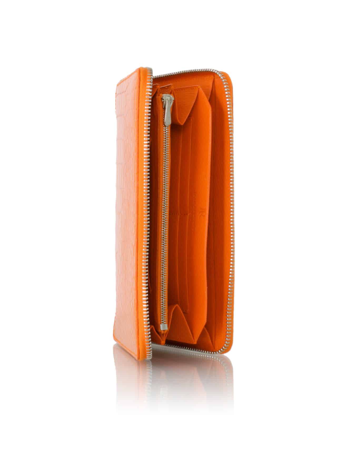 • 8 credit card slots • 2 business card slots • Coin compartment with zip • 3 compartments for notes and receipts or tickets • 2 flat pockets • Zip fastening • Recommended in alligator, calf, ostrich, lizard